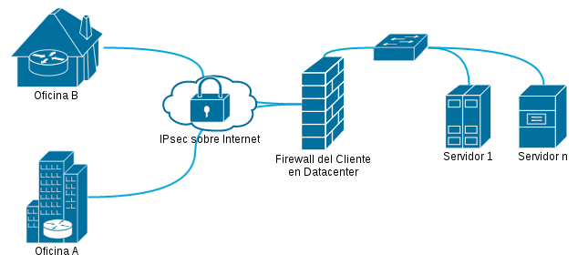 Las VPN sitio a sitio desde datacenter proporcionan comodidad y abstracción de configuración de redes desde el punto de vista del usuario final, ya que no se requiere que los actores que interactuan con los recursos en datacenter usando clientes VPN.
